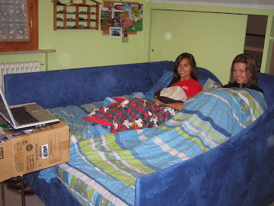 Sundays are pretty laid back here in Siena-there's not much to do in the city other than shop and eat.. non of which are really Sunday-like activities. So we turned our bedroom into a sweet home theater.. we pushed our beds together, piled on the blankets (our room is FREEZING) and watched Pride and Prejudice, my all-time favorite movie, on the laptop. As you can tell from the cardboard box, it was a pretty high tech setup. Haha. But we had a great time.
